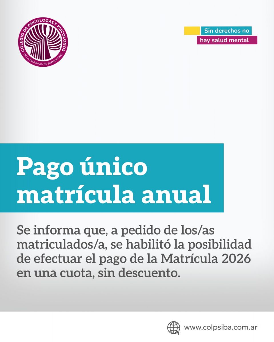 Se informa que, a pedido de los/as matriculados/a, se habilitó la posibilidad de efectuar el pago de la